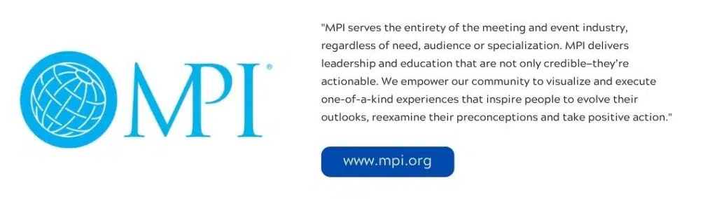 “MPI serves the entirety of the meeting and event industry, regardless of need, audience or specialization. MPI delivers leadership and education that are not only credible—they’re actionable. We empower our community to visualize and execute one-of-a-kind experiences that inspire people to evolve their outlooks, reexamine their preconceptions and take positive action.”